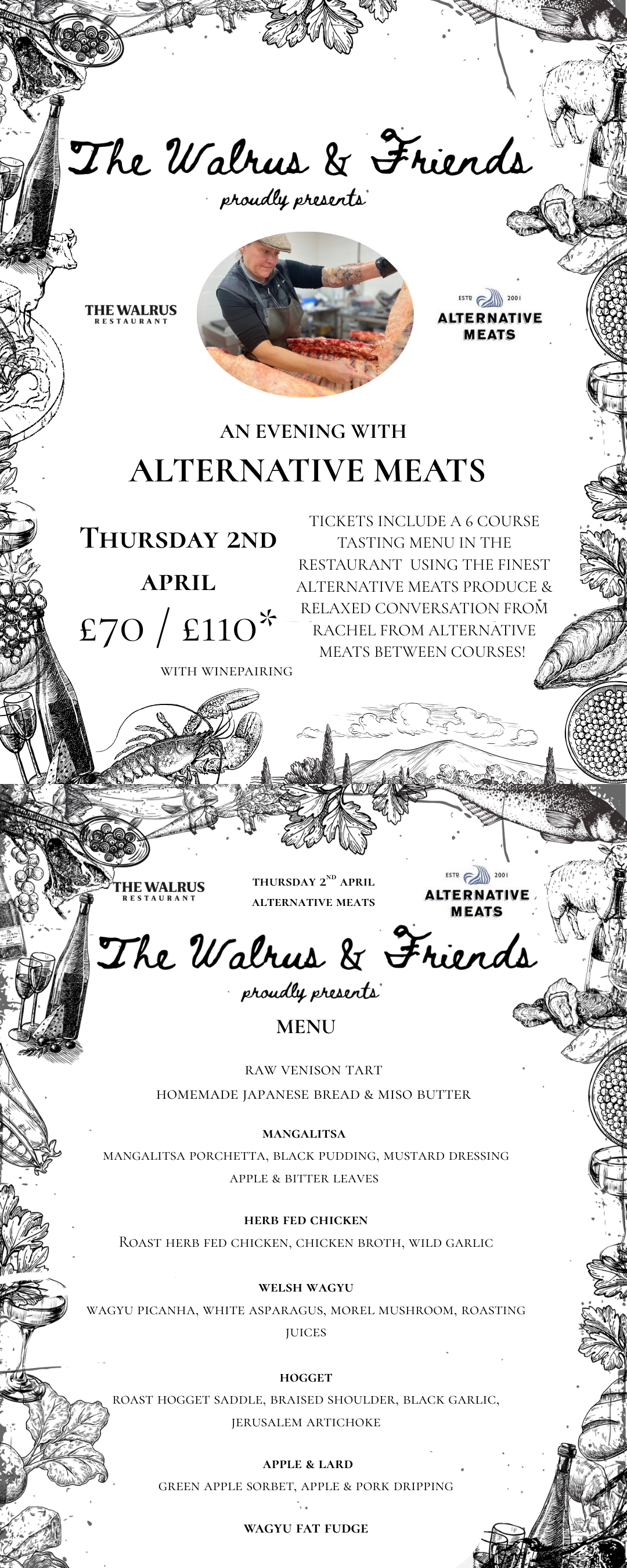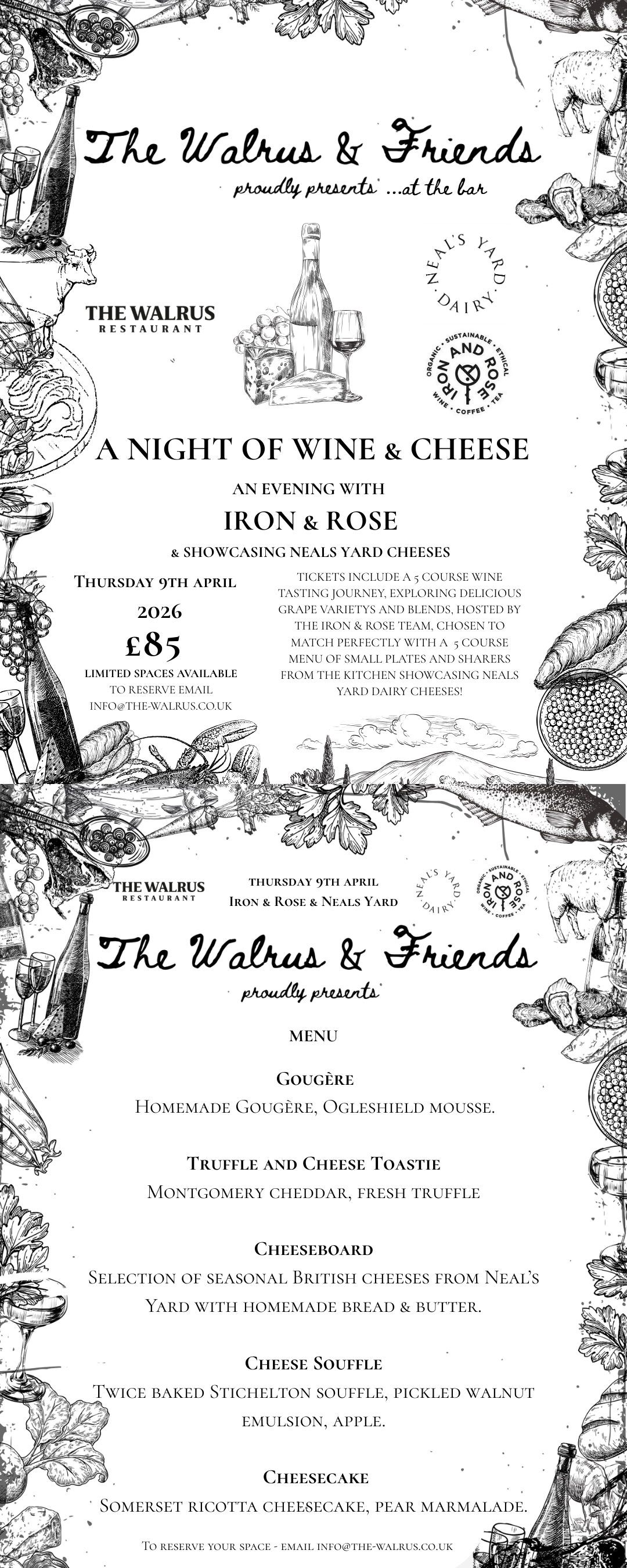 Tickets are limited so grab your space on this delicious evening email our restaurant team on info@the-walrus.co.uk We can’t wait to welcome you!